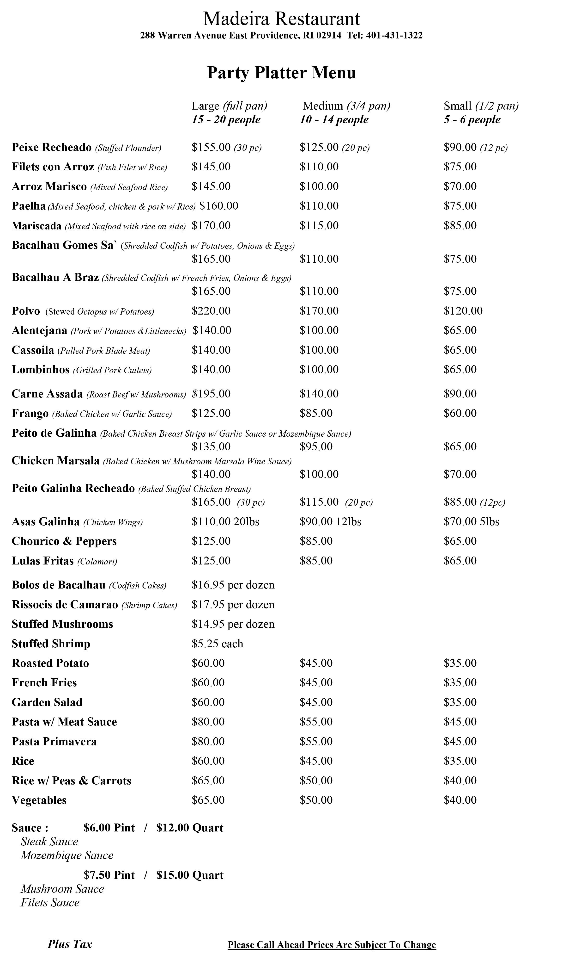 Dinner Menu